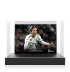 Luka Modric Signed Football Boot – Nike, Orange/Black – In Acrylic Photo Display Case