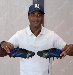 Patrick Kluivert Signed Football Boot – Adidas, Black/Blue – Gift Box