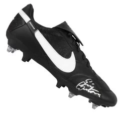 Framed Eric Cantona Signed Football Boot – Nike Premier, Black – Bubble Framed