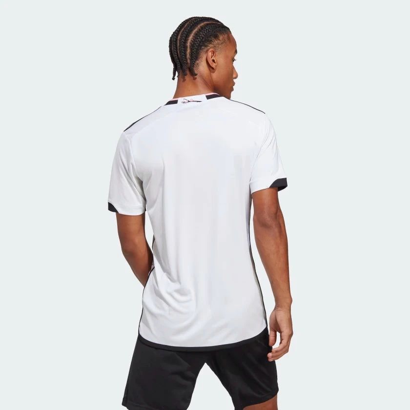 As the regular season swings into action, Washington D.C.’s cherry blossoms burst into bloom. The vibrant graphics on this adidas D.C. United soccer jersey capture the distinctive colors of the U.S. capital city in springtime. Created to keep fans comfortable, it includes moisture-wicking AEROREADY. A woven badge and cherry blossom branch signoff confirm your evergreen support. Made with 100% recycled materials, this product represents just one of our solutions to help end plastic waste.