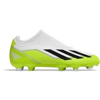 The game’s gone? Nah. It’s just waiting for you to change it. Again. And again. Like to keep your rivals guessing? Go wild in adidas X Crazyfast. Keeping you stable at full tilt on dry natural grass, these laceless soccer cleats for juniors sit on a high-speed firm ground outsole. Featuring extra layers only where reinforcement is required, their lightweight coated textile upper comes with a flat-knit collar that ensures you stay locked in. Made with a series of recycled materials, this upper features at least 50% recycled content. This product represents just one of our solutions to help end plastic waste.