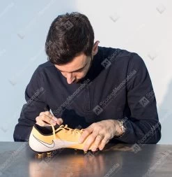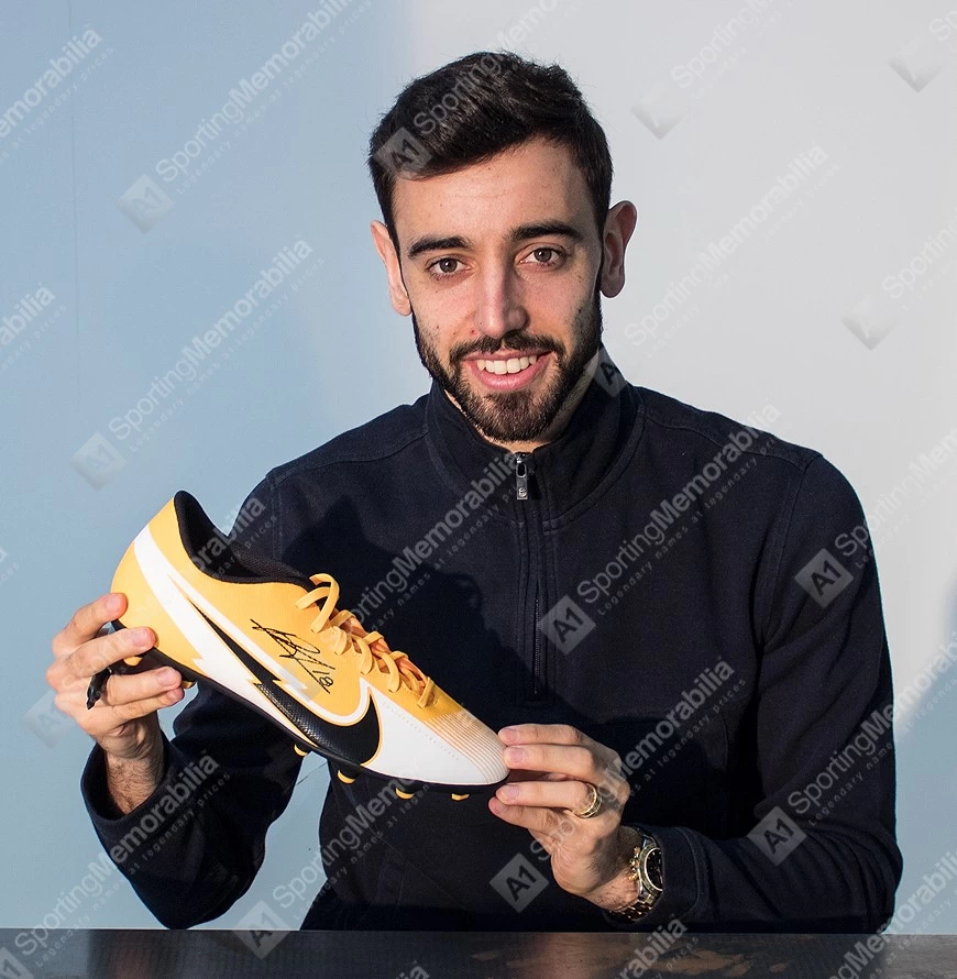 This top spec Nike Mercurial Vapor football boot has been personally hand signed by Bruno Fernandes, in permanent marker pen during a professional exclusive signing session. Each item comes complete with its own official certificate of authenticity which serves as proof that your item is 100% genuinely hand signed.