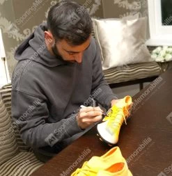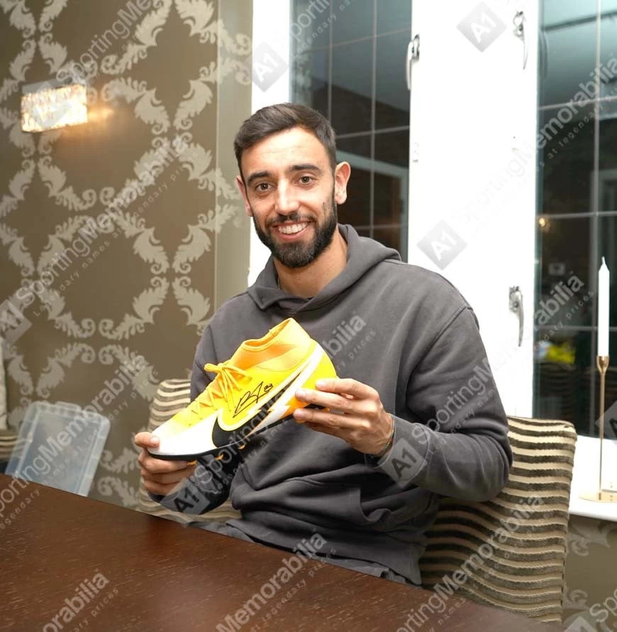 Bruno Fernandes signed football boot. Personally hand signed by Bruno Fernandes at a private signing session in Manchester on 14/10/2022. Each item comes complete with its own official certificate of authenticity which serves as proof that your item is genuine.