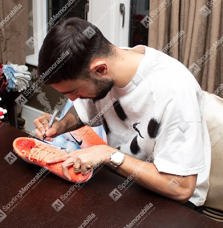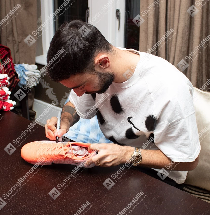 Bruno Fernandes signed football boot. Personally hand signed by Bruno Fernandes at a private signing session in Manchester on 29/11/2021. Each item comes complete with its own official certificate of authenticity which serves as proof that your item is genuine. Presented in our premium A1 Sporting Memorabilia gift box that not only keeps your prized memorabilia protected, it is also ideal for special gifts and events.