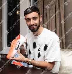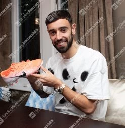 Bruno Fernandes signed football boot. Personally hand signed by Bruno Fernandes at a private signing session in Manchester on 29/11/2021. Each item comes complete with its own official certificate of authenticity which serves as proof that your item is genuine. The item is presented in our unique photo acrylic display case with an action photo presented behind the item to create a stunning piece of signed sports memorabilia. Some basic assembly of this photo acrylic display case is required. Clear instructions of how to assemble your photo acrylic display case will be provided.