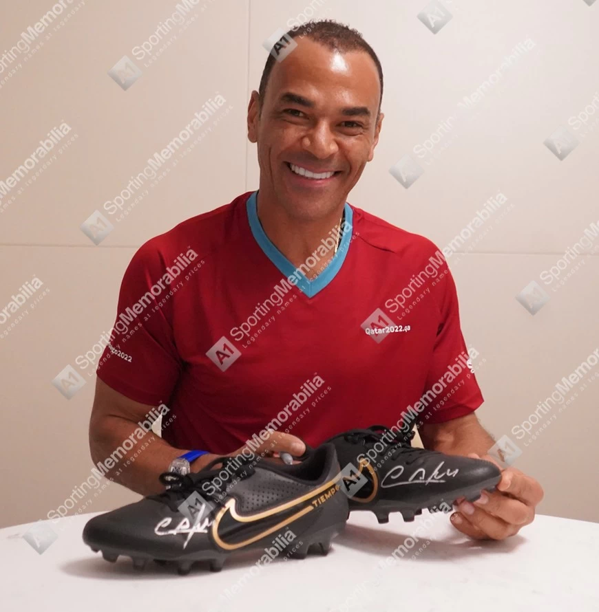 Cafu signed football boot. Personally hand signed by Cafu at a private signing session in Doha on 02/12/2022. Each item comes complete with its own official certificate of authenticity which serves as proof that your item is genuine.