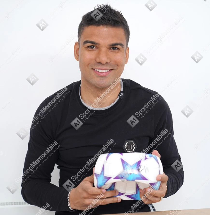 Casemiro signed football. Personally hand signed by Casemiro at a private signing session in Manchester on 22/05/2023. Each item comes complete with its own official certificate of authenticity which serves as proof that your item is genuine.