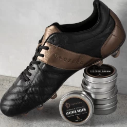 Men’s football boot in water-resistant, full-grain “soccer” leather. Anti-stretch fabric lining and non-slip PU heel lining. Insole with flex points on the ball of the foot. Perfect for firm ground.