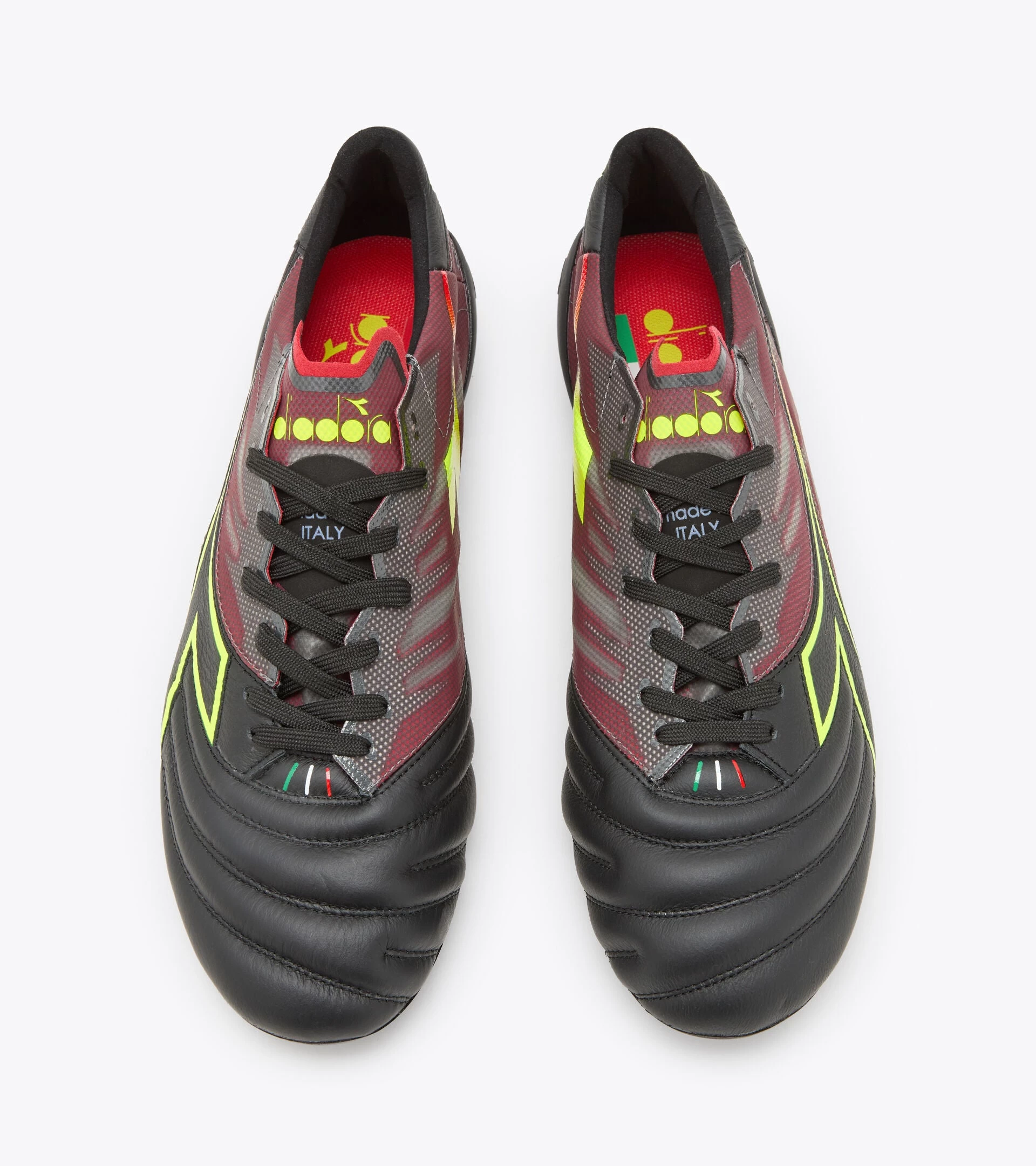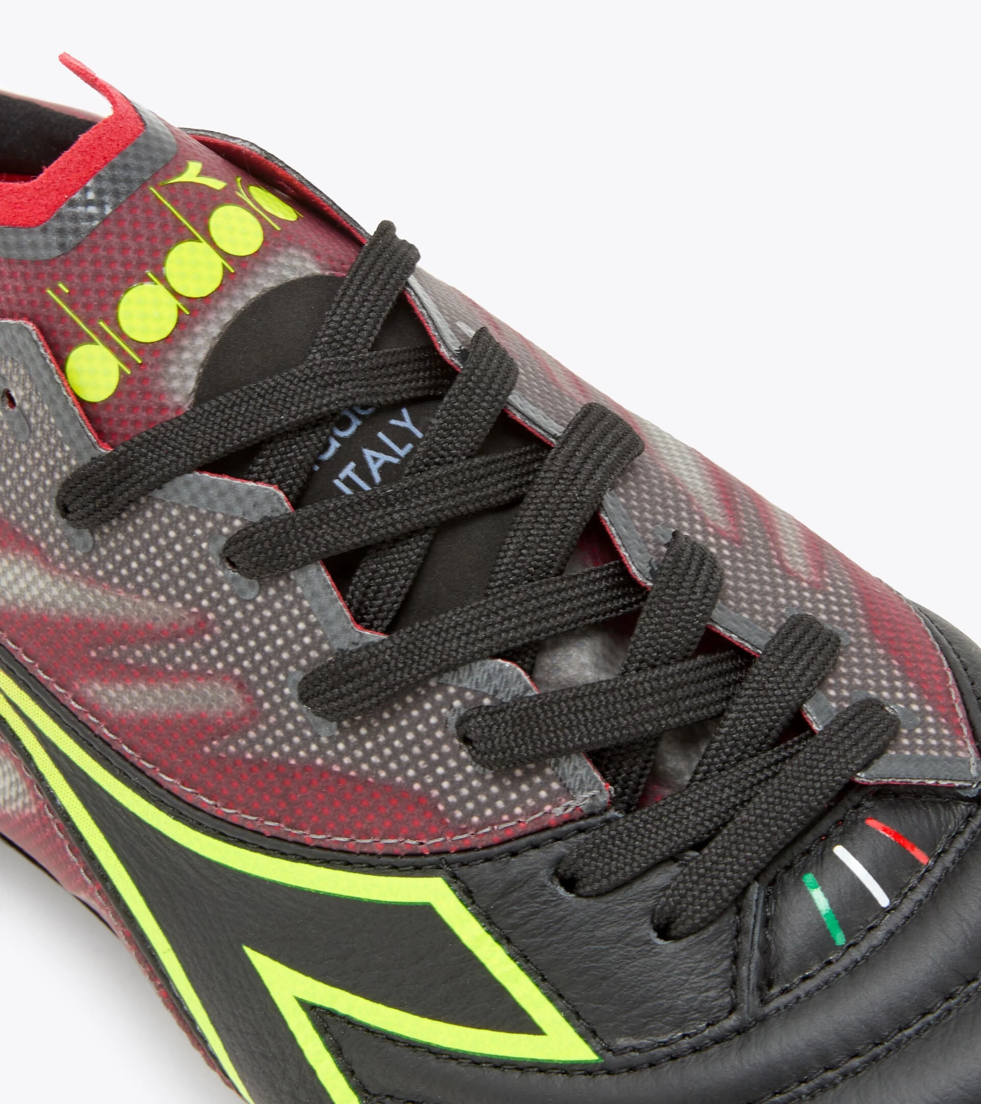 - 100% Made in Italy, from the design to the choice of materials, right up to the final ‘field tests’, these football boots have been studied in the diadora laboratories to ensure they mold perfectly to the shape of the foot, so as to ensure that the most dynamic and agile footballer can express their full potential, encouraging and facilitating all types of play.
