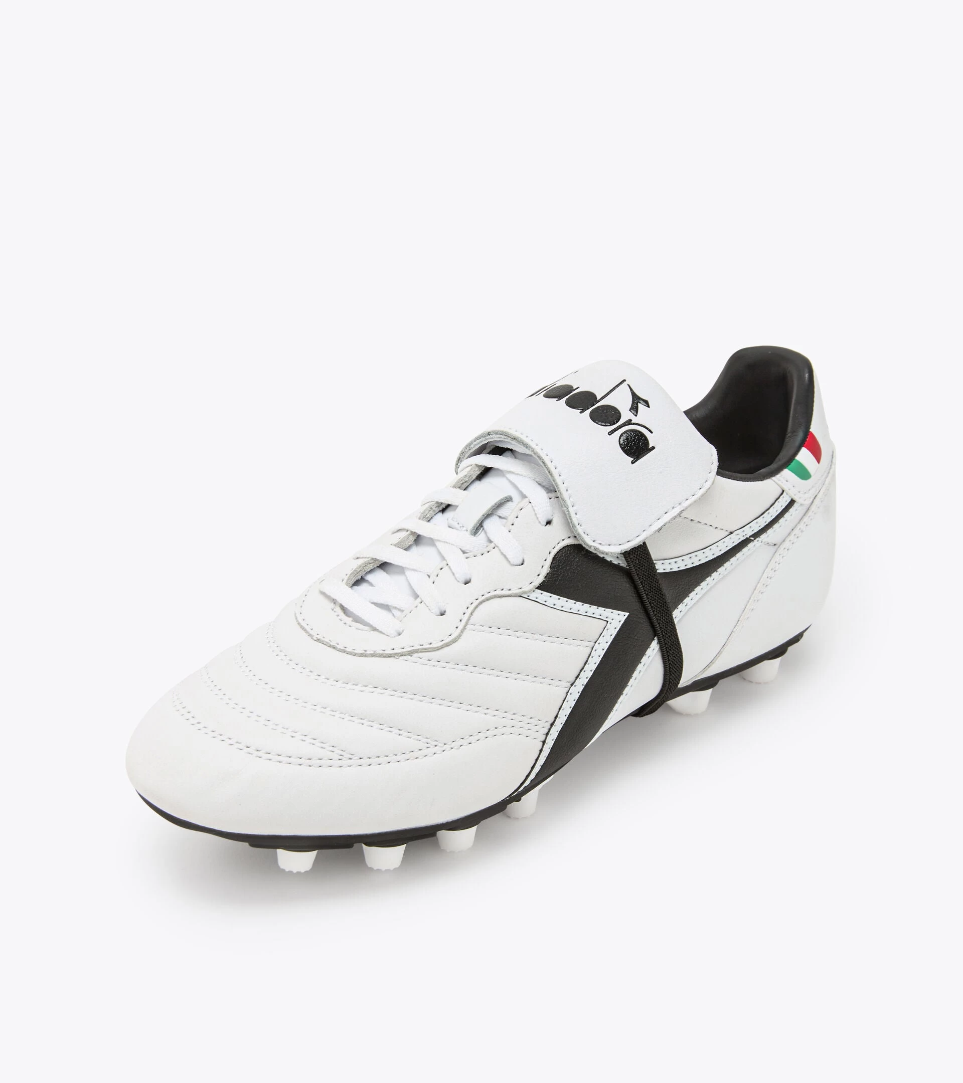 Men’s football boots with a sole in Pebax and soft premium leather. The tricolour details celebrate Italy and the brand’s football tradition.