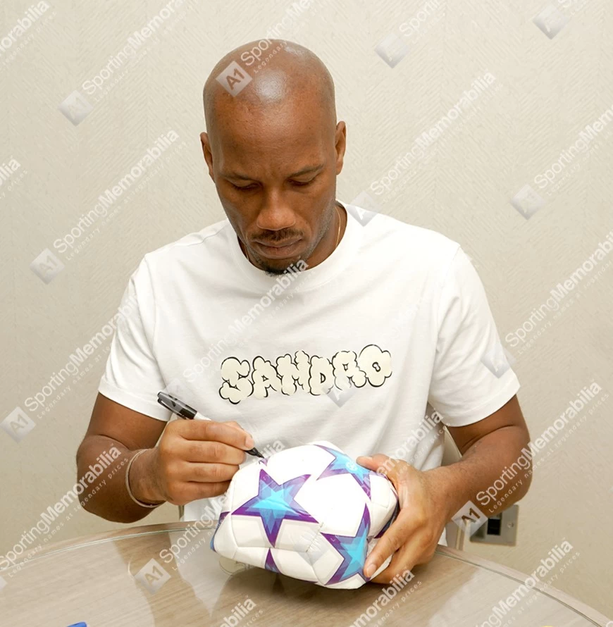 Didier Drogba signed football. Personally hand signed by Didier Drogba at a private signing session in London on 19/05/2023. Each item comes complete with its own official certificate of authenticity which serves as proof that your item is genuine.