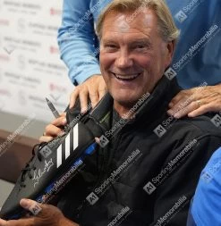 Glenn Hoddle signed football boot. Personally hand signed by Glenn Hoddle at a private signing session in Birmingham on 03/09/2022. Each item comes complete with its own official certificate of authenticity which serves as proof that your item is genuine. Expertly framed in a bespoke dome display with quality black frame, two action pictures and descriptive plaque.