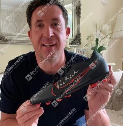 Robbie Fowler signed Nike football boot. Personally hand signed by Robbie Fowler himself at an organised signing session in Liverpool on 09/06/2021. Each item comes complete with its own official certificate of authenticity which serves as proof that your item is 100% genuine. Expertly framed in a bespoke dome display with quality black frame, two action pictures and descriptive plaque.