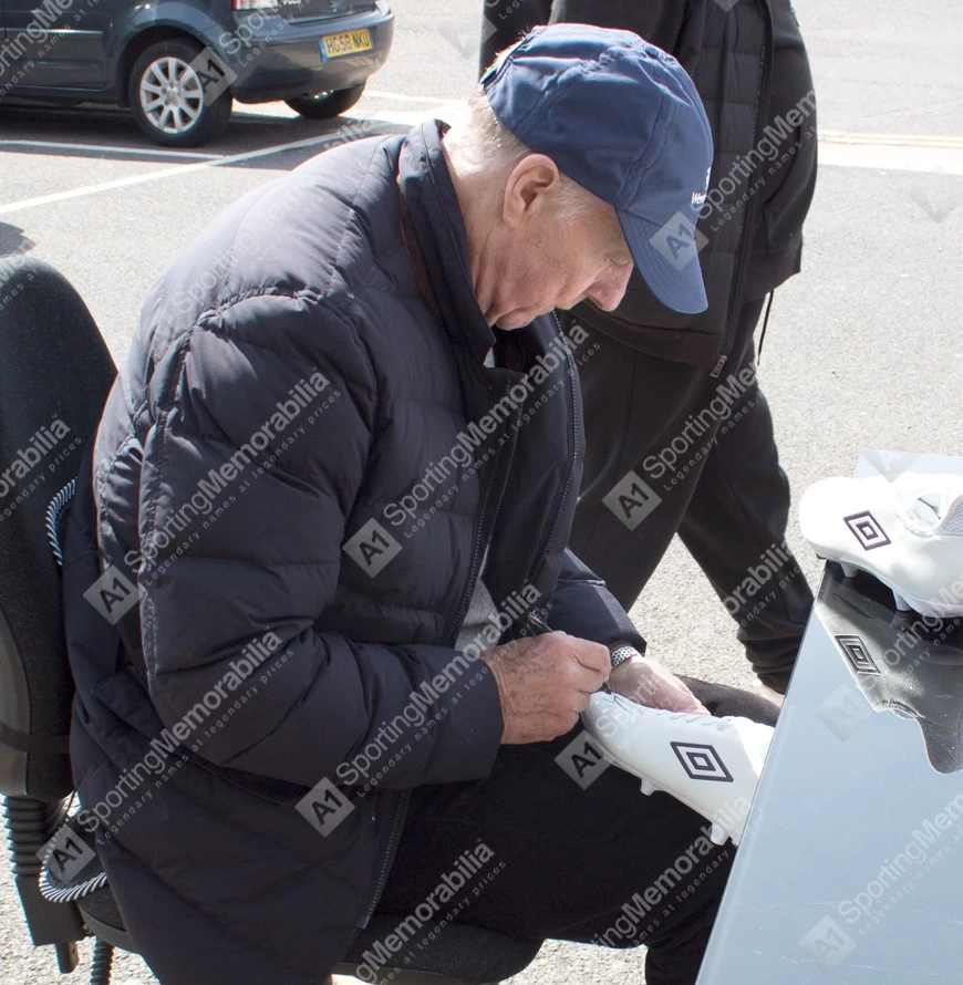 Football boot personally hand signed by footballing legend Sir Geoff Hurst. This football boot features a perfect autograph signed permanent pen – hand signed at a private signing session with A1 Sporting Memorabilia in Christchurch on 09/04/2021. Each item comes complete with its own Certificate of Authenticity which serves as proof that your item is 100% genuine. Expertly framed in a bespoke dome display with quality black frame, two action pictures and descriptive plaque.