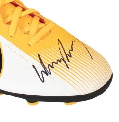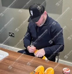Wayne Rooney signed football boot. Personally hand signed by Wayne Rooney at a private signing session in Manchester on 13/12/2021. Each item comes complete with its own official certificate of authenticity which serves as proof that your item is genuine. Expertly framed in a bespoke dome display with quality black frame, two action pictures and descriptive plaque.