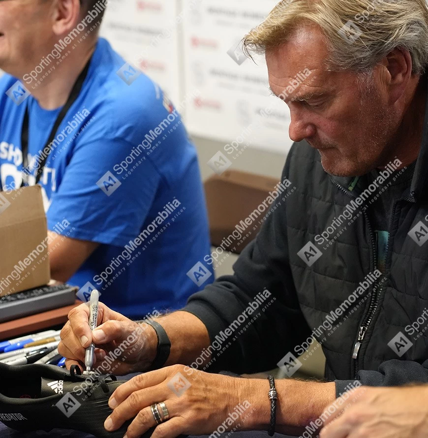 Glenn Hoddle signed football boot. Personally hand signed by Glenn Hoddle at a private signing session in Birmingham on 03/09/2022. Each item comes complete with its own official certificate of authenticity which serves as proof that your item is genuine. The item is presented in our unique photo acrylic display case with an action photo presented behind the item to create a stunning piece of signed sports memorabilia. Some basic assembly of this photo acrylic display case is required. Clear instructions of how to assemble your photo acrylic display case will be provided.
