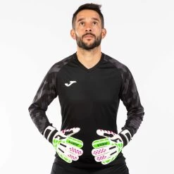 Unisex football goalkeeper gloves made of high quality fabric providing an exceptional fit and comfort for the player. Its reinforced finger design helps to gain an optimal touch of the ball. Goalkeeper gloves with exceptional grip for the player. Adjustable in the wrist. 4mm Premium German latex recommended for all weather conditions.Soft latex foam provides more comfort to the players.Mesh used for breathability inside the gloves.Roll Finger Cut provides optimal latex to the ball contact.