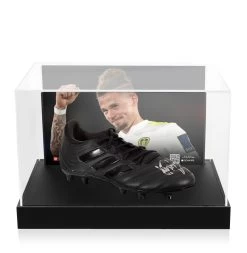 Kalvin Phillips signed football boot. Personally hand signed by Kalvin Phillips at a private signing session in Leeds on 25/02/2022. Each item comes complete with its own official certificate of authenticity which serves as proof that your item is genuine. The item is presented in our unique photo acrylic display case with an action photo presented behind the item to create a stunning piece of signed sports memorabilia. Some basic assembly of this photo acrylic display case is required. Clear instructions of how to assemble your photo acrylic display case will be provided.
