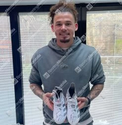 Kalvin Phillips signed football boot. Personally hand signed by Kalvin Phillips at a private signing session in Leeds on 25/02/2022. Each item comes complete with its own official certificate of authenticity which serves as proof that your item is genuine. Presented in our premium A1 Sporting Memorabilia gift box that not only keeps your prized memorabilia protected, it is also ideal for special gifts and events.