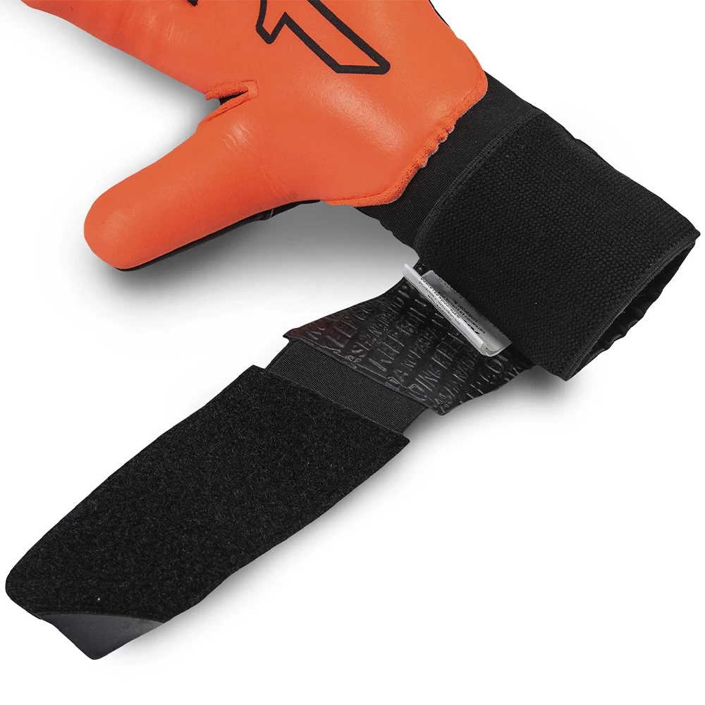 Closure: It is composed of elastic fabric in the back area and elastic wristband in the lower area of the palm. 2-piece strap joined by an application of elastic, which allows each goalkeeper to adjust it to their entire taste.