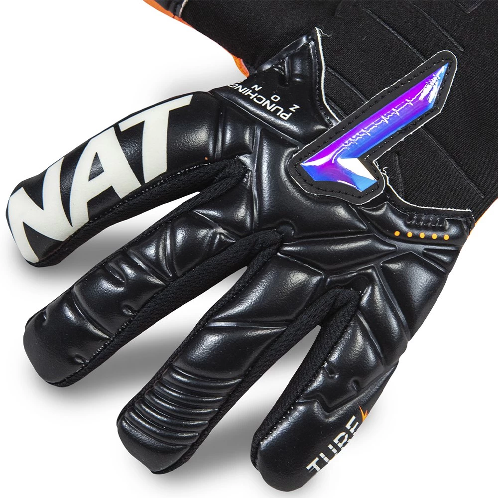 Backhand: Application of synthetic latex with large volume in the upper area and elastic and highly breathable fabric from the middle to the bottom, which makes it a light glove, but with a feeling of being armed.