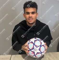 Luis Diaz signed Champions League football. Personally hand signed by Luis Diaz at a private signing session in Liverpool on 08/05/2022. Each item comes complete with its own official certificate of authenticity which serves as proof that your item is genuine. The football is presented in a clear acrylic display case that creates a stunning piece of signed sports memorabilia.