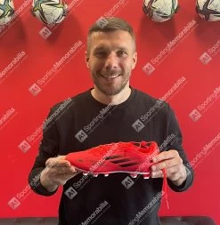 Lukas Podolski signed football boot. Personally hand signed by Lukas Podolski at a private signing session in Zabrze, Poland on 03/05/2022. Each item comes complete with its own official certificate of authenticity which serves as proof that your item is genuine. The item is presented in a clear acrylic case with a mirrored base that creates a stunning piece of signed sports memorabilia.