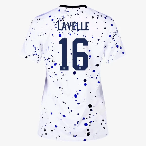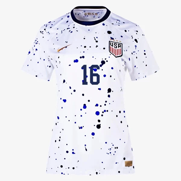 Like a piece of abstract art, the USWNT 2023 Home shirt gives off more than meets the eye. Its paint-splatter design means no two shirt patterns are the same, celebrating the unique individuals who, together, make up a squad that fearlessly pushes the boundaries of their sport and creates order among the chaos of the game. Gold accents throughout are paired with hidden details to commemorate the team’s unrivalled 4 world championships. Like other jerseys in our Stadium collection, this one pairs replica design details with sweat-wicking technology to give you a game-ready look inspired by the Stars and Stripes.