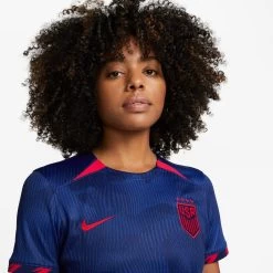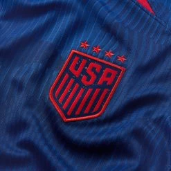 The US 2023 Away shirt is all about the stars and stripes. A red, white and blue colorway adds a touch of national DNA while details on the collar and sleeves pull inspiration from the points of a star to add bold style. Stars over the team crest are paired with a hidden graphic on the inside to commemorate the team’s unrivalled 4 world championships. Like other shirts in our Stadium collection, this one pairs replica design details with sweat-wicking technology to give you a game-ready look inspired by your favorite team.