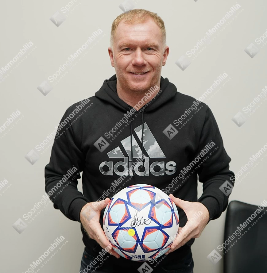Paul Scholes signed football. Personally hand signed by Paul Scholes at a private signing session in Manchester on 29/11/2022. Each item comes complete with its own official certificate of authenticity which serves as proof that your item is genuine. The football is presented in a clear acrylic display case that creates a stunning piece of signed sports memorabilia.