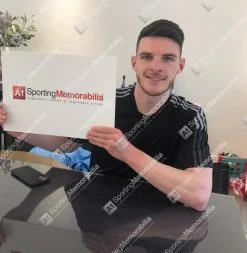 This Adidas boot was personally signed by West Ham and England’s star defensive midfielder Declan Rice during a private signing session. Each item comes complete with its own official certificate of authenticity which serves as proof that your item is genuine. Expertly framed in a bespoke dome display with quality black frame, two action pictures and descriptive plaque.