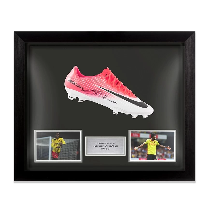 Nathaniel Chalobah signed football boot – Nike Magista. Personally, hand signed by the player himself at an organised signing session held by A1 Sporting Memorabilia. Expertly framed in a bespoke dome display with a quality black frame, two action pictures, and descriptive plaque.