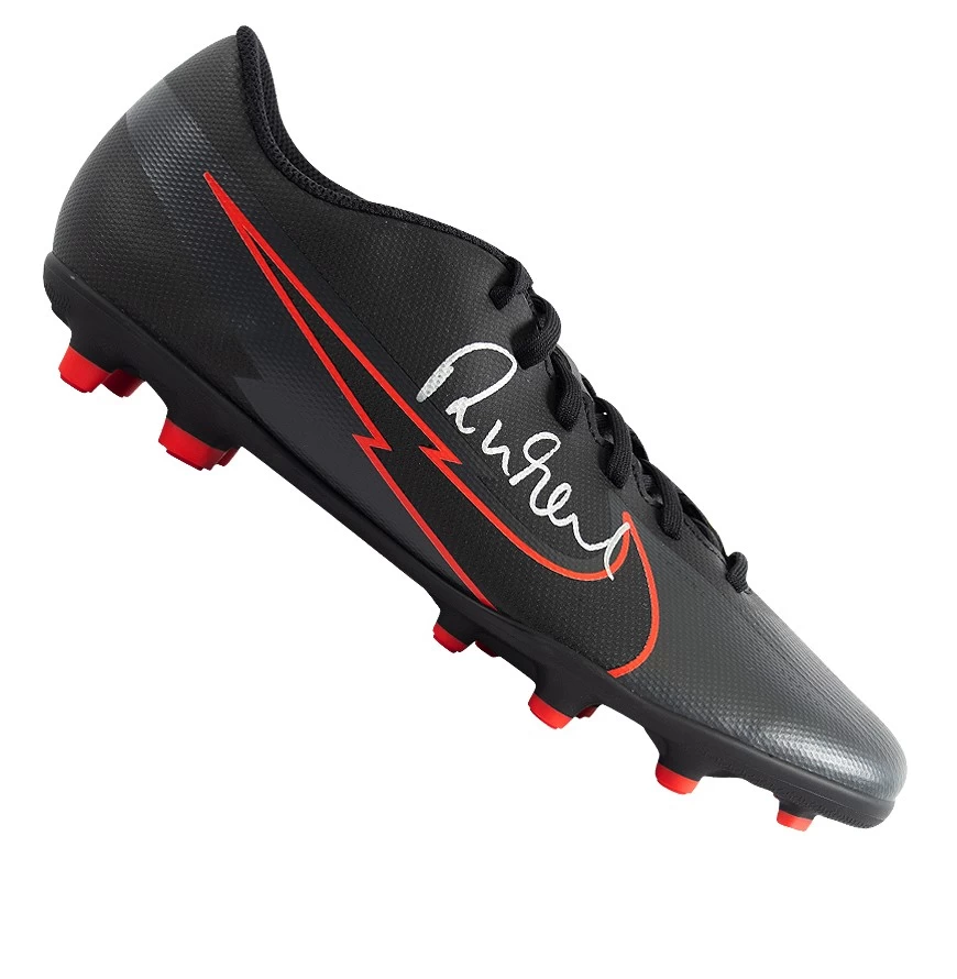 Robbie Fowler signed Nike football boot. Personally hand signed by Robbie Fowler himself at an organised signing session in Liverpool on 09/06/2021. Each item comes complete with its own official certificate of authenticity which serves as proof that your item is 100% genuine. The item is presented in a clear acrylic case with a mirrored base that creates a stunning piece of signed sports memorabilia.