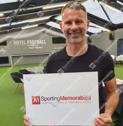 Ryan Giggs signed football boot. Personally hand signed by Ryan Giggs at a private signing session in Manchester on 30/09/2021. Each item comes complete with its own official certificate of authenticity which serves as proof that your item is genuine. The item is presented in a clear acrylic case with a mirrored base that creates a stunning piece of signed sports memorabilia.