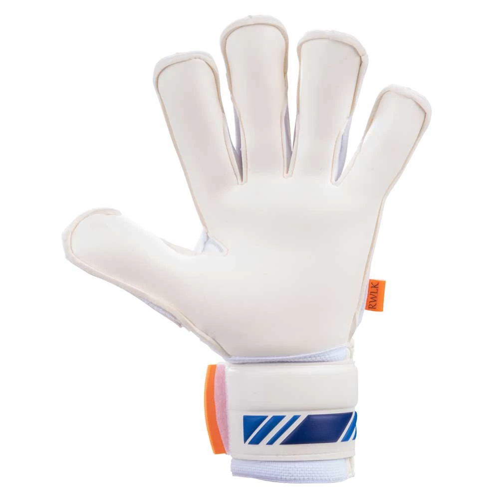 RWLK “The Clyde Full negative cut with extra thumb amplification, 3,5mm Pro Soft German Latex and 3,5mm cushioning. Orange logo label at the side of the glove, 9cm ergonomic 360 degrees elastic wristband with orange silicon label.