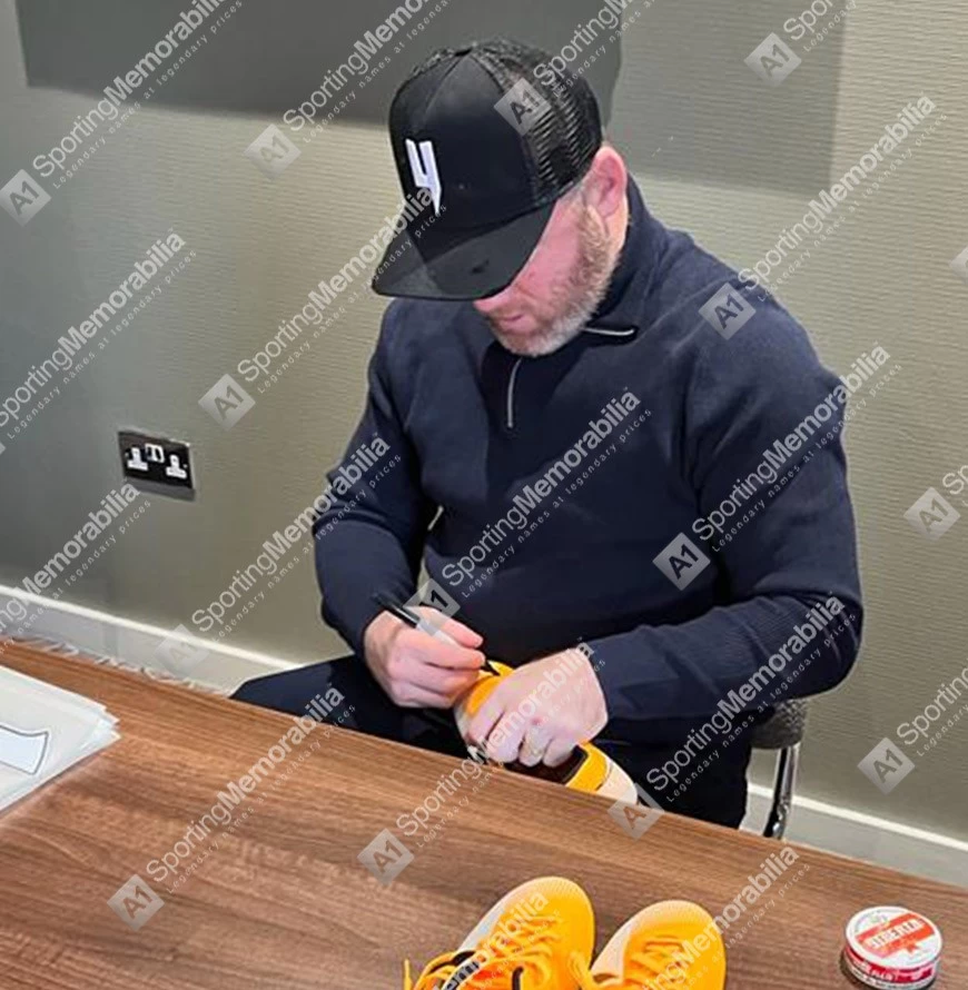 Wayne Rooney signed football boot. Personally hand signed by Wayne Rooney at a private signing session in Manchester on 13/12/2021. Each item comes complete with its own official certificate of authenticity which serves as proof that your item is genuine. Presented in our premium A1 Sporting Memorabilia gift box that not only keeps your prized memorabilia protected, it is also ideal for special gifts and events.