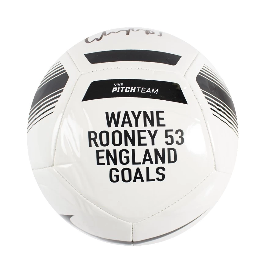 This fantastic Nike football produced to celebrate Wayne Rooney’s record breaking 53 England goals with text “Wayne Rooney 53 England Goals” and personally hand signed by Wayne Rooney at a private and exclusive signing session in Manchester on 09/07/2020. Each item comes complete with its own official certificate of authenticity which serves as proof that your item is 100% genuine.