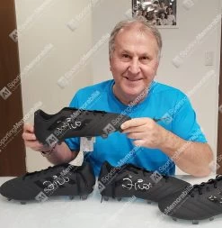 Zico signed football boot. Personally hand signed by Zico at a private signing session in Kashima, Japan on 24/08/2021. Each item comes complete with its own official certificate of authenticity which serves as proof that your item is genuine. Presented in our premium A1 Sporting Memorabilia gift box that not only keeps your prized memorabilia protected, it is also ideal for special gifts and events.